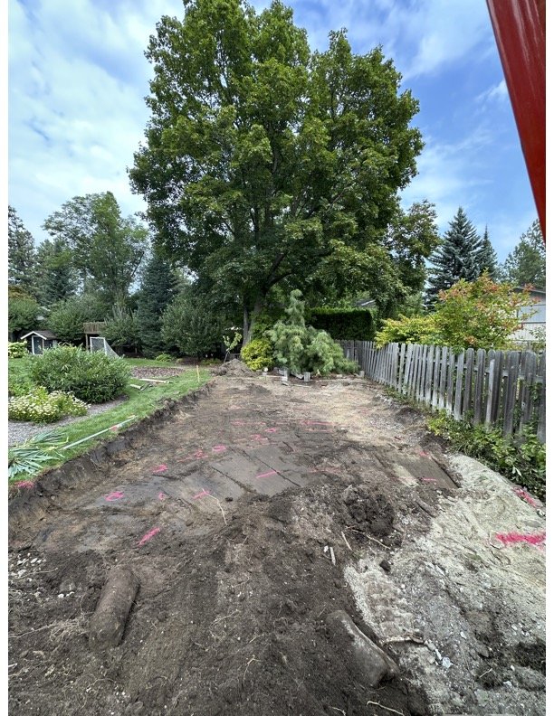 DIRT + ROCK REMOVAL, ROCK RETAINING WALL, PARKING PAD GRADE + GRAVEL